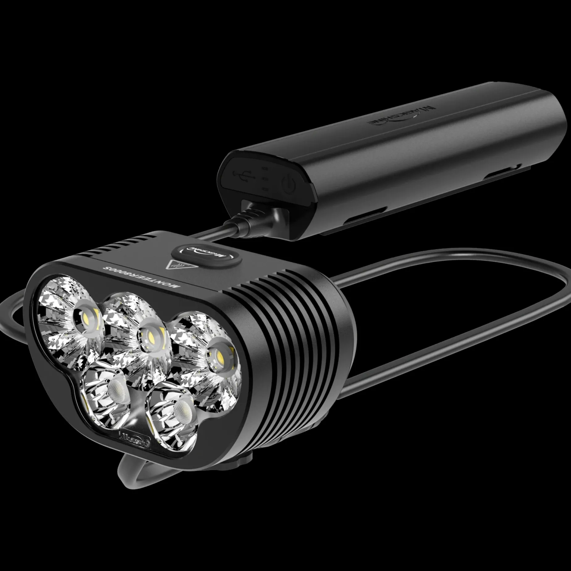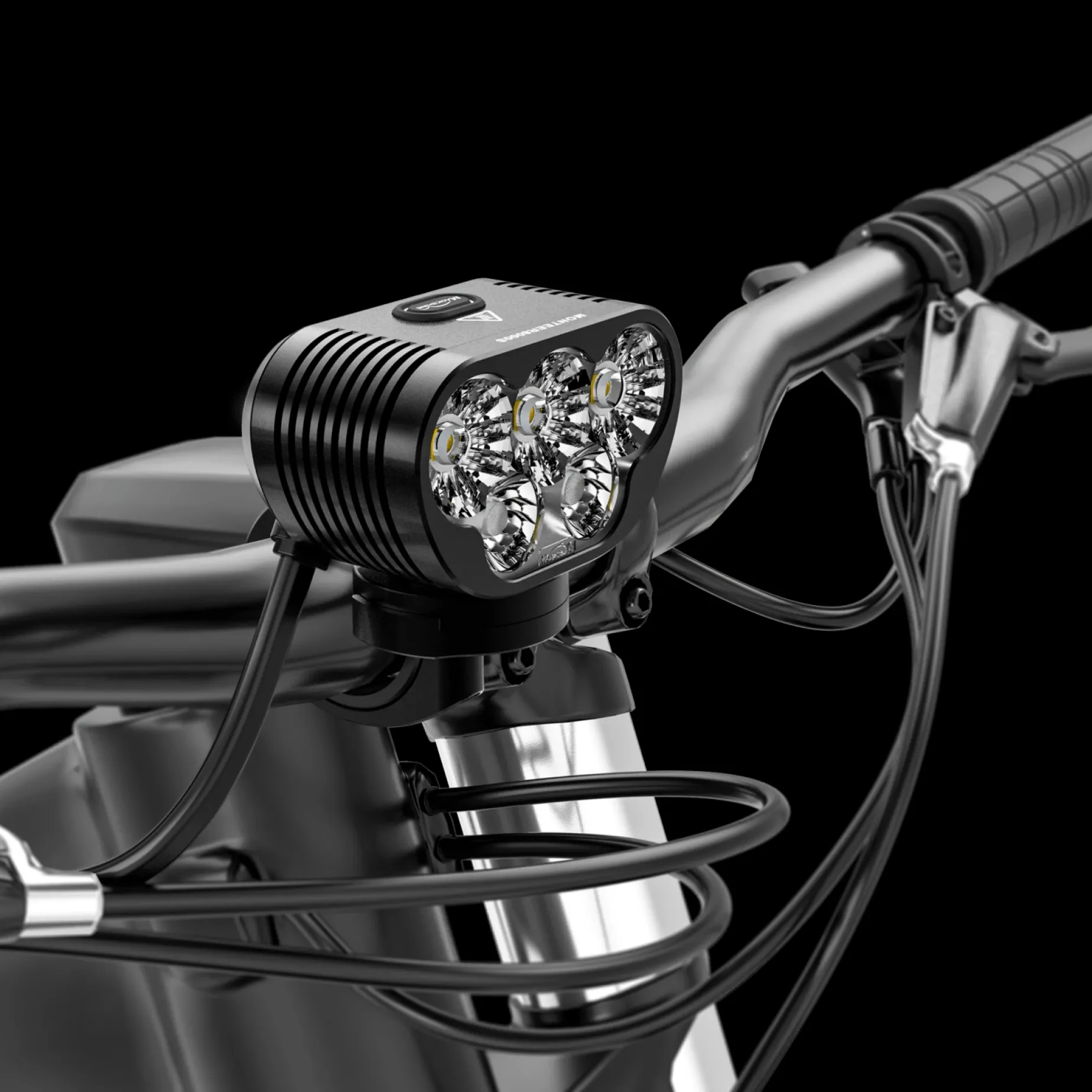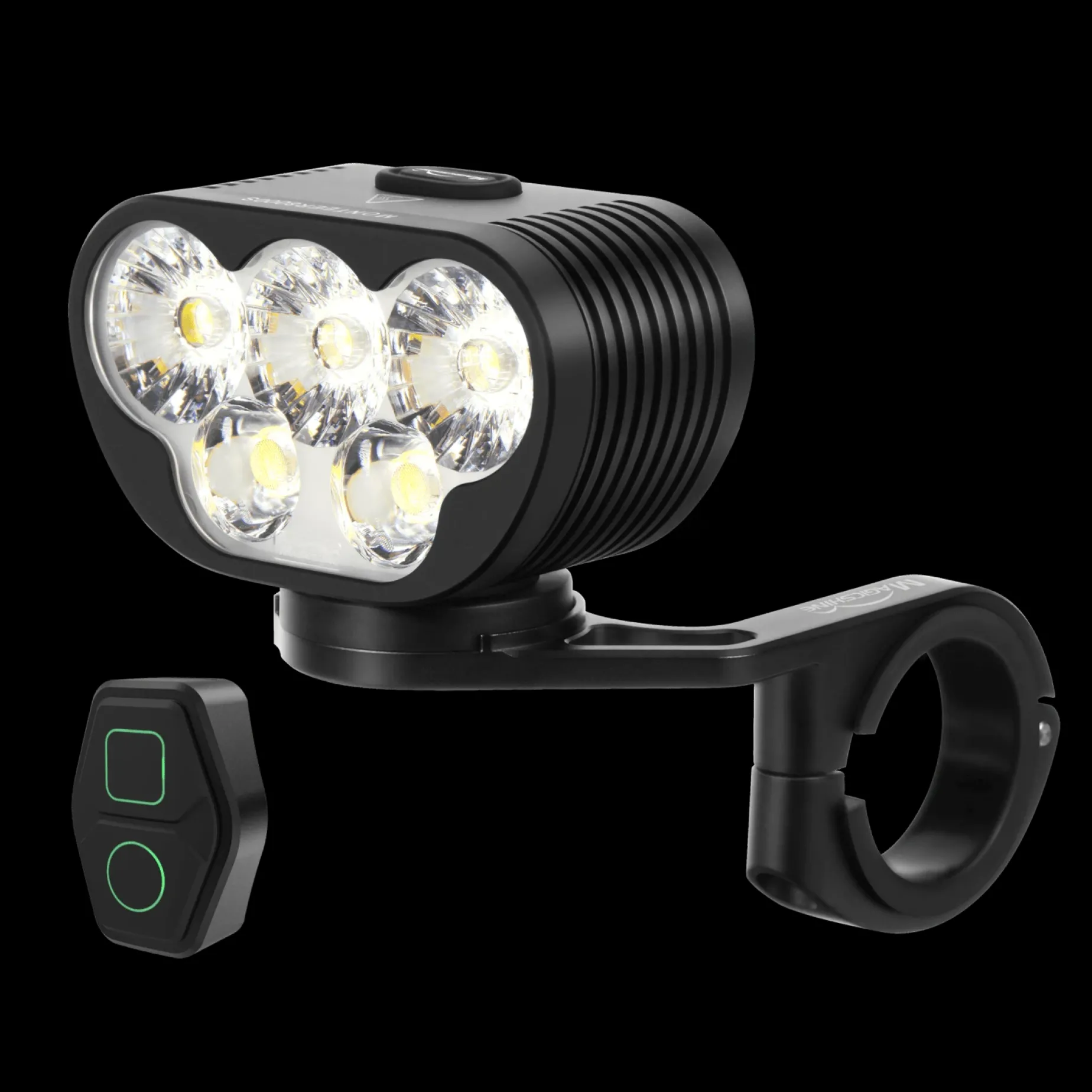 Ekstern Vanntett Sykkellykt For Nattkjøring. Designet For Terrengsykling. 8500 Lumen. Trådløs Fjernkontroll, Styrefeste Og Båtteripakke Medfølger. Vekt: 564 Gram.