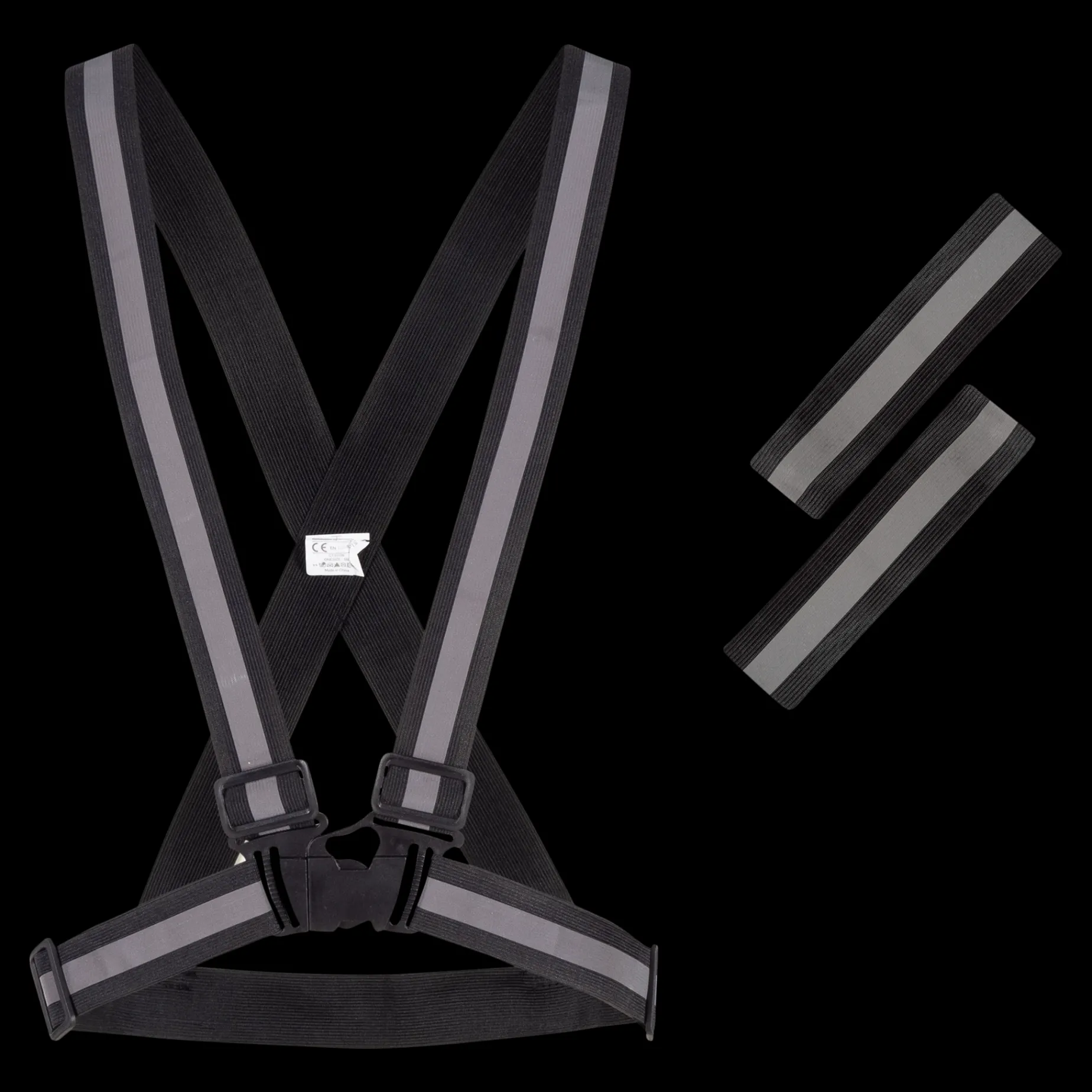 Reflekssele Og To Armbånd Som Holder På Synligheten I Mørket. Armbåndene Kan Brukes Både På Armene Og På Beina. Selen Kan Justeres I Størrelsen I Både Lengde Og Midje.