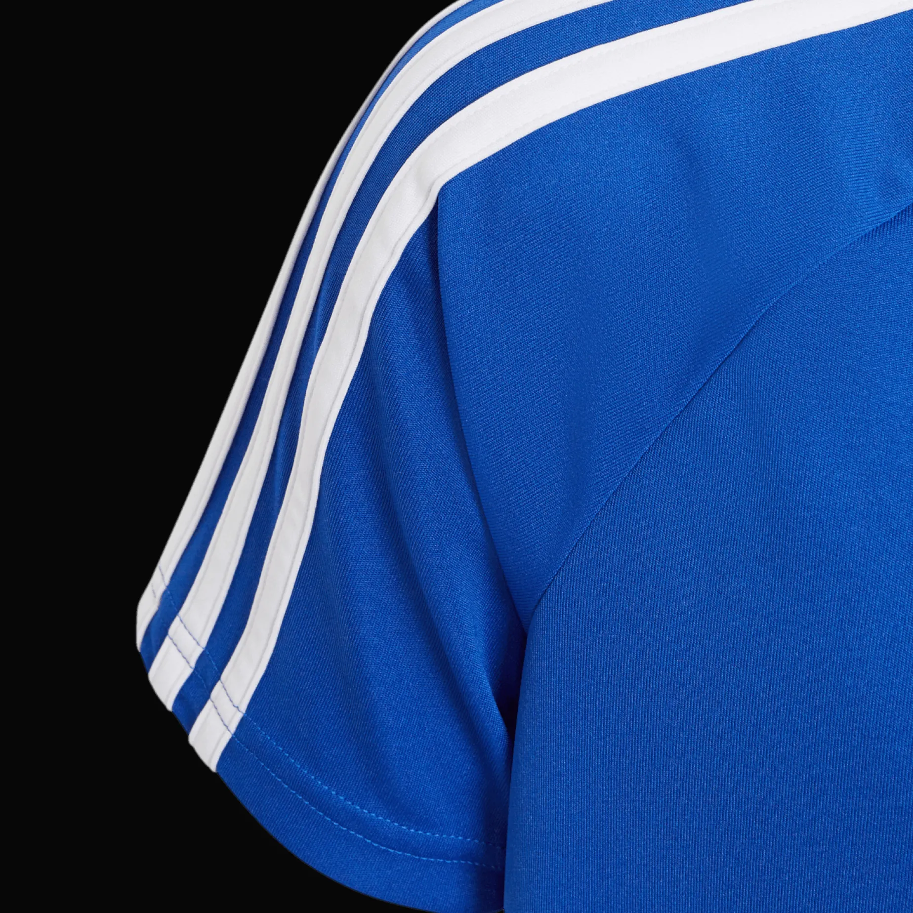 Allsidig T-Skjorte I Hurtigtørkende Materiale. Rund Hals, Korte Ermer Og Tre Ikoniske Striper På Overarmene.