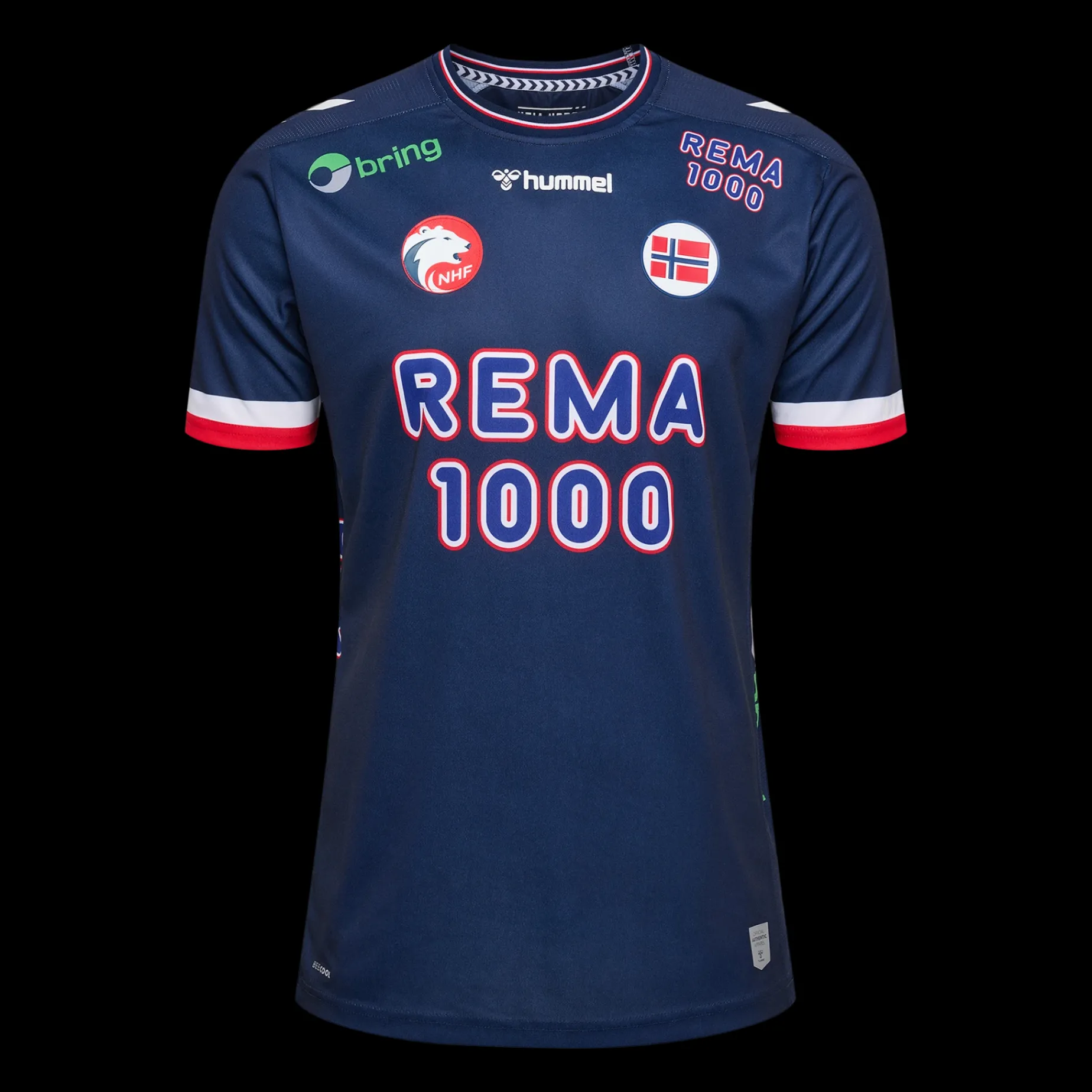 Norges Offisielle Spillerdrakt For Håndballgutta Produsert I Fukttransporterende Og Pustende Materiale. Det Norske Flagget Er Plassert På Hjertesiden.