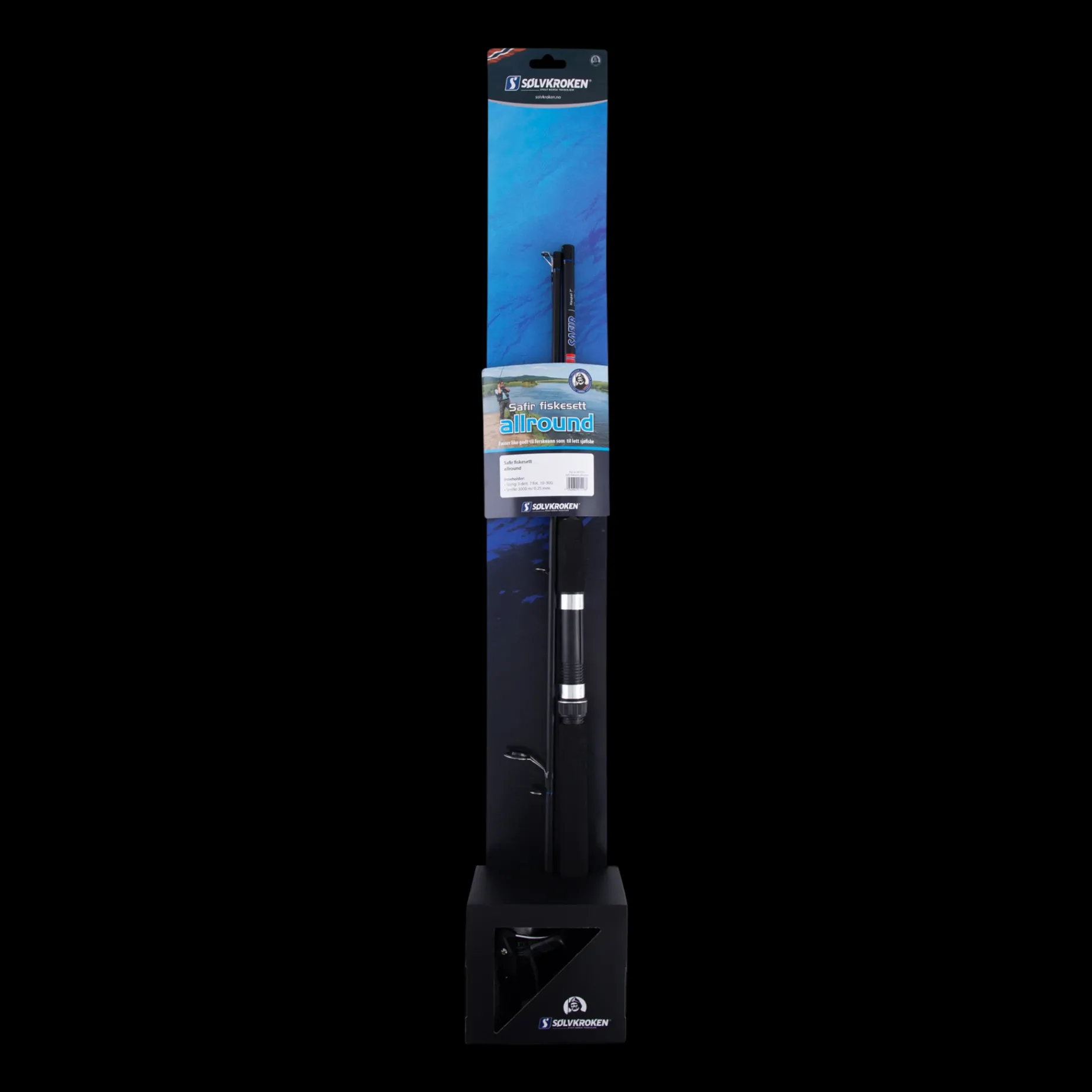 Sølvkroken Safir St Fiskesett Inneholder Én Tredelt Stang (7’) Som Er Beregnet For Fiske Med Slukvekter Fra 10 – 30 Gram. Haspelsnella (1000) Leveres Med Ferdig Påspolet 0,25 Mm Sene.